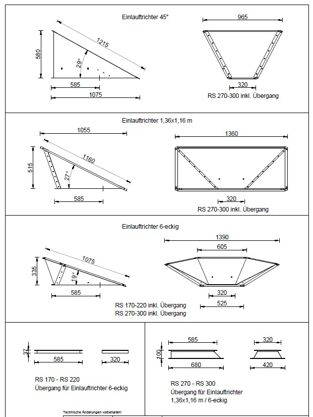 Sowohl die Einlauf-Trichtergrößen als auch die fahrbare Achsen können individuell zusammengestellt werden.