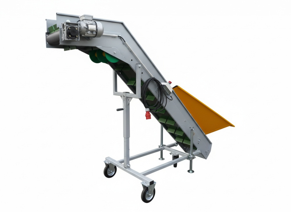 Unsere Förderbänder eignen sich für den Transport für Hackschnitzel, Getreide, Kartoffeln, Zwiebeln und andere Schüttgüter. Unsere Stollenbänder liefern wir in verschiedenen Ausführungen und Längen. Ein CEE-Gerätestecker ist zum Anschluss an der Maschine verbaut.