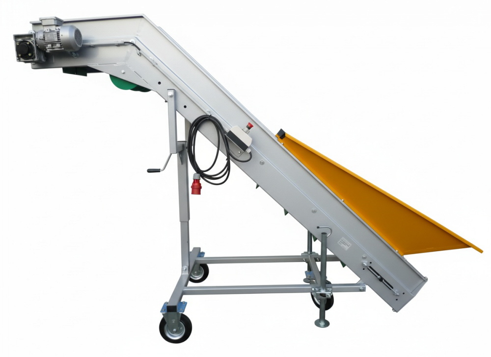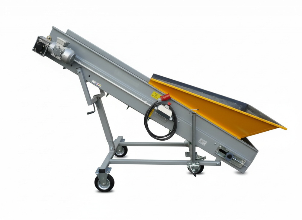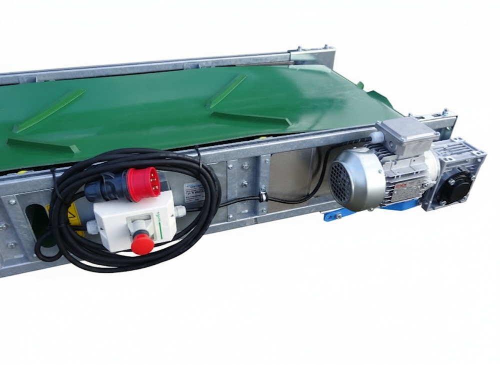 Unsere Förderbänder eignen sich für den Transport für Hackschnitzel, Getreide, Kartoffeln, Zwiebeln und andere Schüttgüter. Unsere Stollenbänder liefern wir in verschiedenen Ausführungen und Längen. Ein CEE-Gerätestecker ist zum Anschluss an der Maschine verbaut.